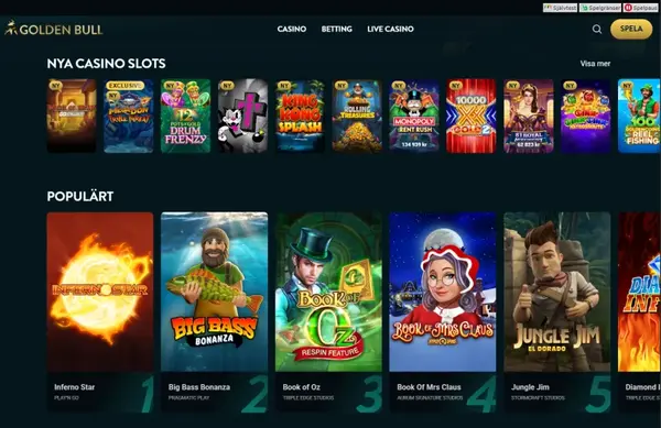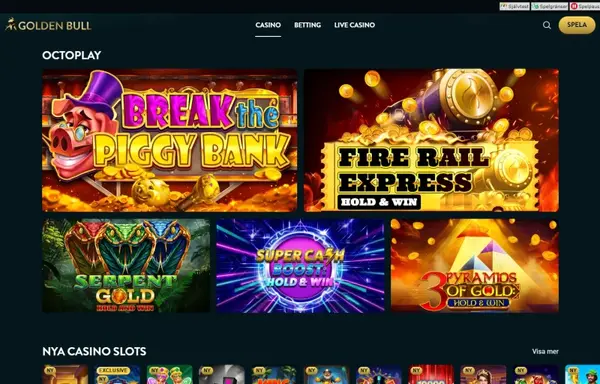 NÀr du spelar pÄ casino Goldenbull Sverige fÄr du tillgÄng till 5 500 spel inom slots, live casino, bordsspel och sportspel. Vi fokuserar pÄ tydliga bonusvillkor, snabba insÀttningar och förutsÀgbara uttagstider. Om du jÀmför alternativ pekar mÄnga Goldenbull-recensioner pÄ vÄrt breda spelutbud och enkel bankhantering som de frÀmsta skÀlen att stanna.