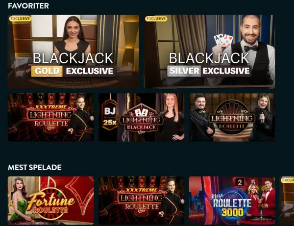 Live casino tar det vidare med streamade bord som leds av professionella dealers, optimerat för smÄ skÀrmar och stabil video. Exklusiva bord, varianter av Lightning Roulette och game show-format listas separat sÄ att du kan jÀmföra regler, grÀnser och bordstempo direkt.